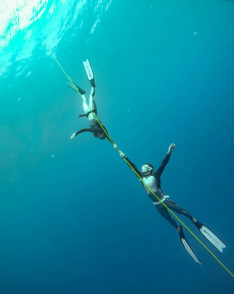 This is an advanced course, and somebody applying should have good swimming and diving skills before. Level 2 freediver or alike. This goes into detail on technical aspects, advanced and perfected techniques of freediving, competition level knowledge of the sport, mental preparation and good tolerance of depth conditions. This is the highest non professional level of freediving education, and a doorstep to instructor status.